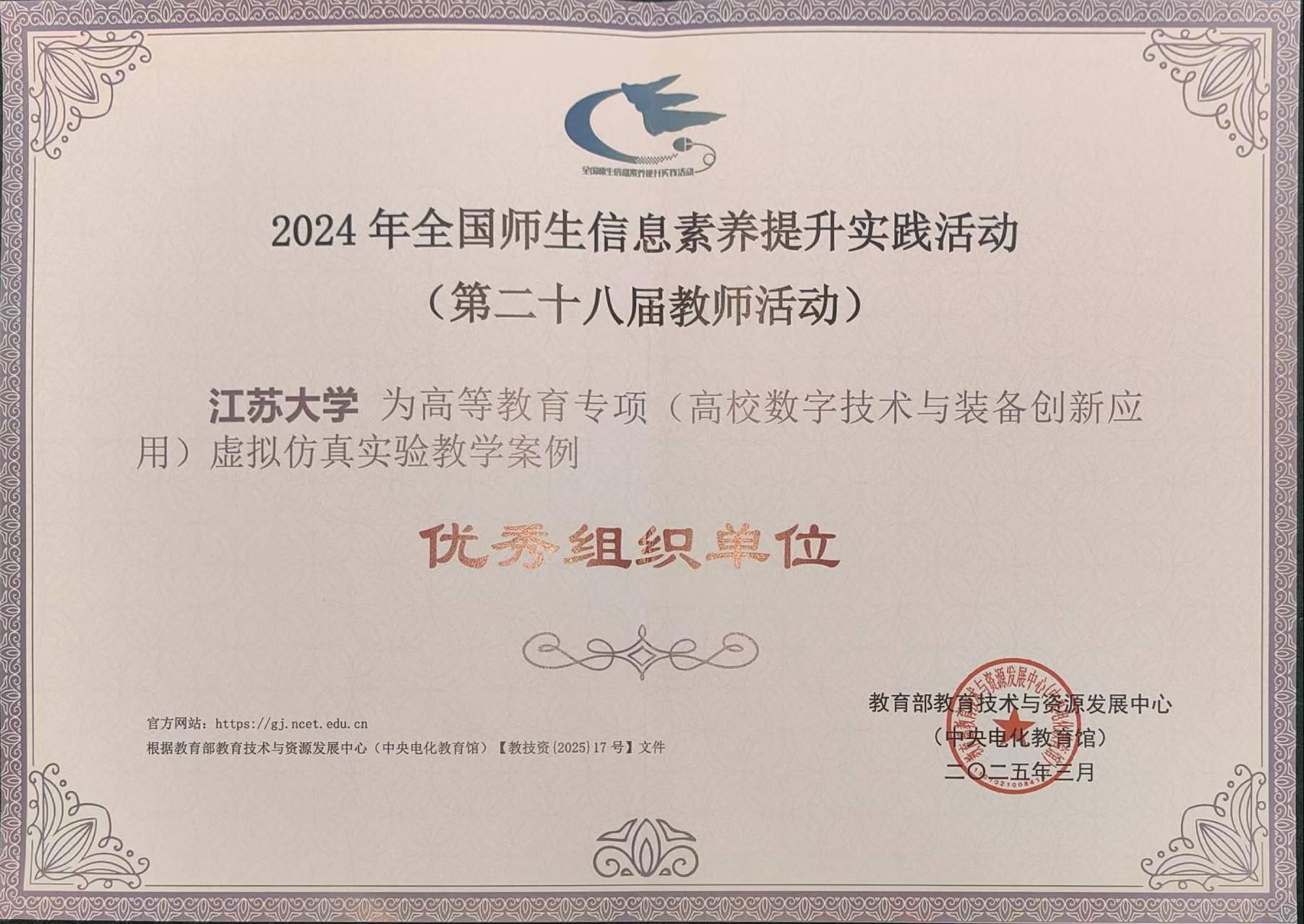 近日,在教育部教育技術與資源發展中心(中央電化教育館)開展的2024年全國師生信息素養提升實踐活動(第二十八屆教師活動)中,“高等學校虛擬仿真教學創新實驗室”項目2024年度案例征集評選結果正式揭曉。全國共有116項虛擬仿真實驗教學案例獲評高等教育專項典型作品,其中江蘇省23項。我校4個項目入選,學校獲評“優秀組織單位”。