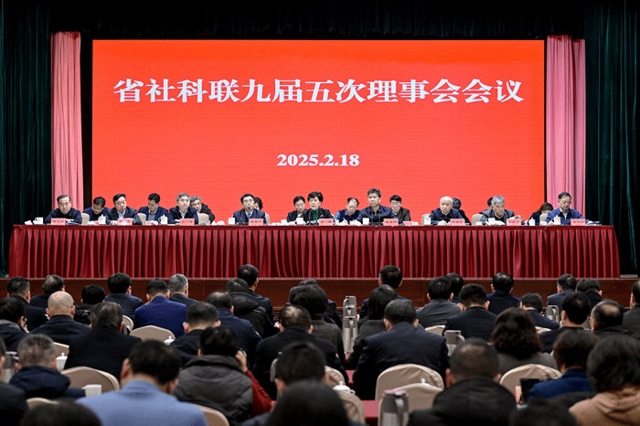 2月18日,省社科聯九屆五次理事會會議在南京召開。會議回顧總結2024年工作,部署安排2025年重點任務,審議表決九屆理事會部分常務理事和理事替補的決定。省委常委、省委宣傳部部長徐纓出席會議并講話,省人大常委會副主任、省社科聯主席曲福田作2024年度理事會工作報告。省社科聯黨組書記、常務副主席張新科主持會議,省社科聯常務理事、江蘇大學黨委書記李洪波作代表發言。近300名理事及省社科聯全體工作人員參加會議。