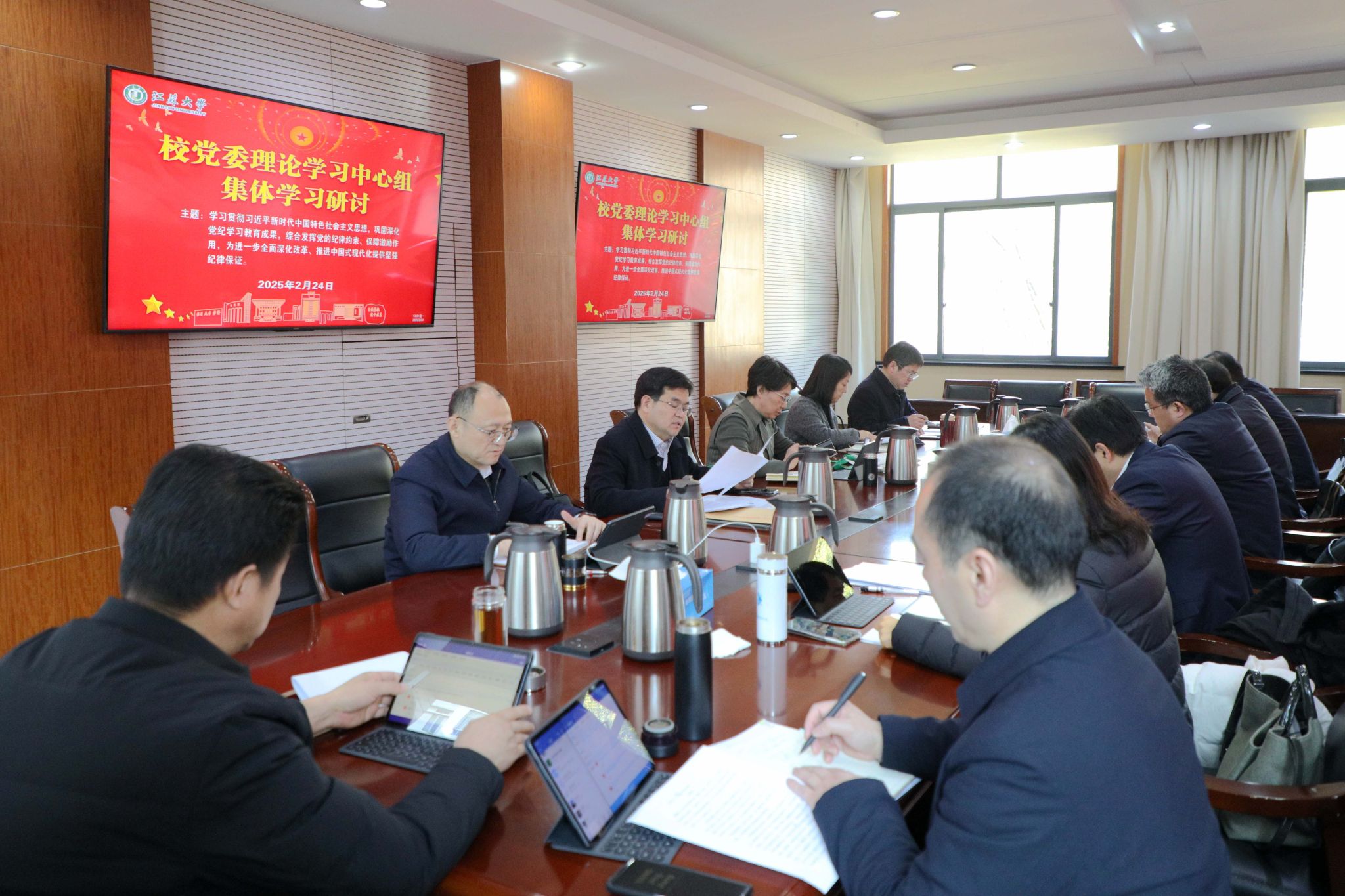學習會上,李洪波以“第一議題”領學了《求是》雜志2024年第24期發表的習近平總書記重要文章《深入推進黨的自我革命》;校黨委副書記張濟建專題領學了習近平總書記關于建設和加強黨的全面領導的相關重要論述。全體校黨委領導班子成員圍繞學習主題作了重點交流發言。