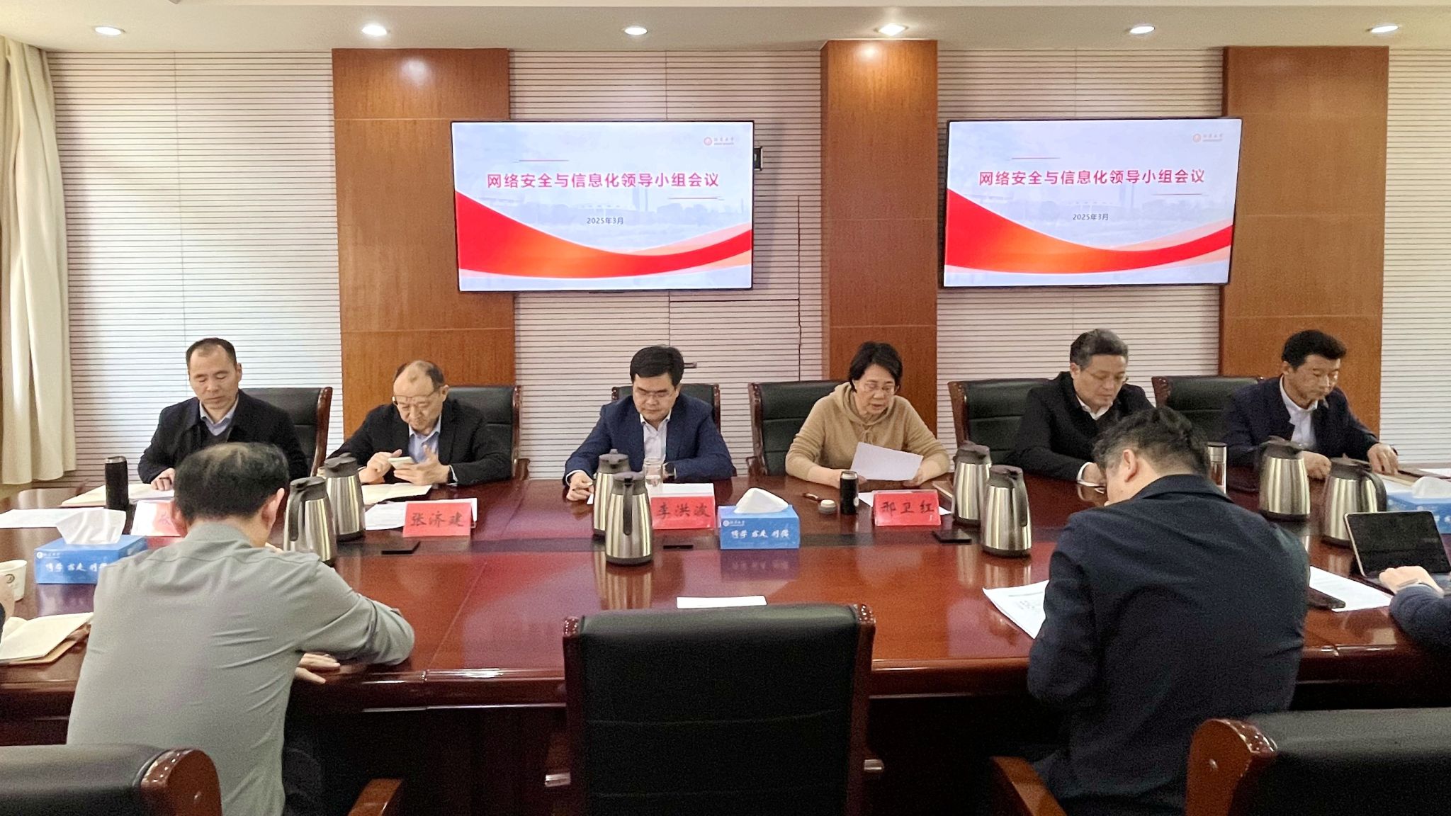 3月24日,學校召開網絡安全和信息化領導小組工作會議,聽取近期網絡安全和信息化工作情況匯報,研究部署下一階段網絡安全和信息化建設相關工作。校黨委書記李洪波,校長邢衛紅,黨委副書記張濟建,黨委常委、副校長楊道建,黨委常委、組織部部長楊敬江,黨委常委、宣傳部部長、統戰部部長吳麟麟及領導小組成員出席會議。會議由楊道建主持。