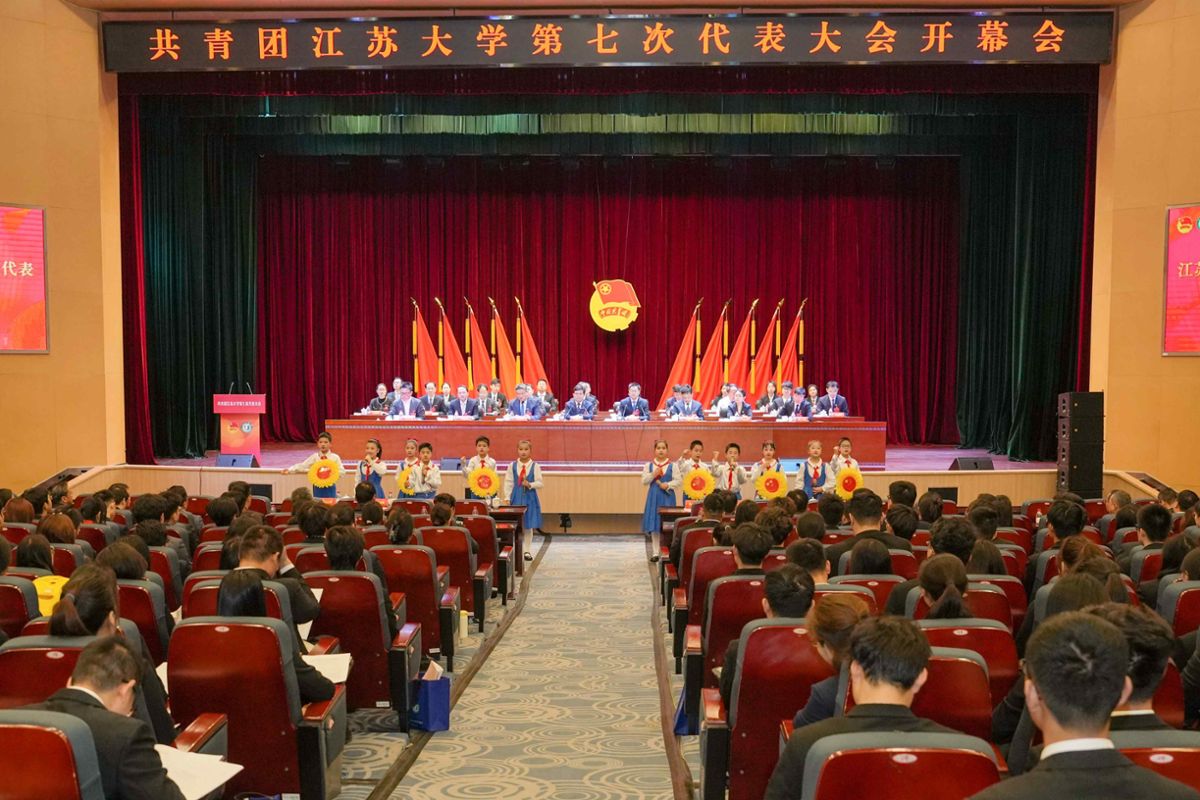 大會開幕前,全體與會人員唱國歌、團歌,共同觀看了江蘇大學共青團工作巡禮片(2021-2025年)。江蘇大學附屬學校少先隊員代表獻詞。