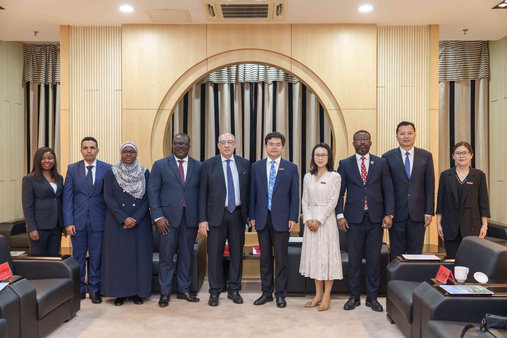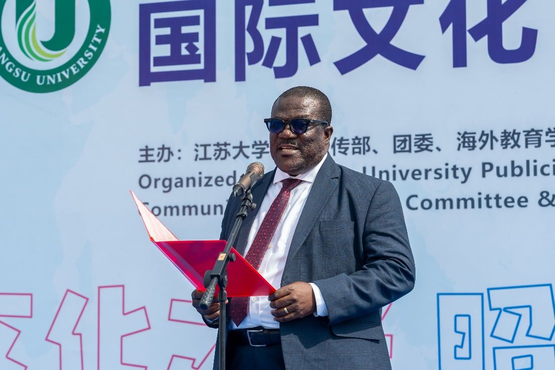 校黨委書記李洪波,黨委副書記張濟建,黨委常委、副校長楊道建、任旭東、蔡英鳳,摩洛哥駐華大使阿卜杜勒卡德爾·安薩里,加納駐華使館臨時代辦亞歷山大·本-阿夸亞,坦桑尼亞駐華使館公使扎伊納布·祖貝里·馬索羅及其他外交官代表,江蘇省教育廳對外合作與交流處四級調研員李勤徑,江蘇省高教學會外國留學生教育管理研究委員會副理事長兼秘書長張海軍,鎮江市委宣傳部、鎮江市外辦、鎮江市出入境等相關政府部門代表,蘇州匯川技術、美蘭集團、江大源等企業代表以及學校相關部門主要負責人等出席開幕式。