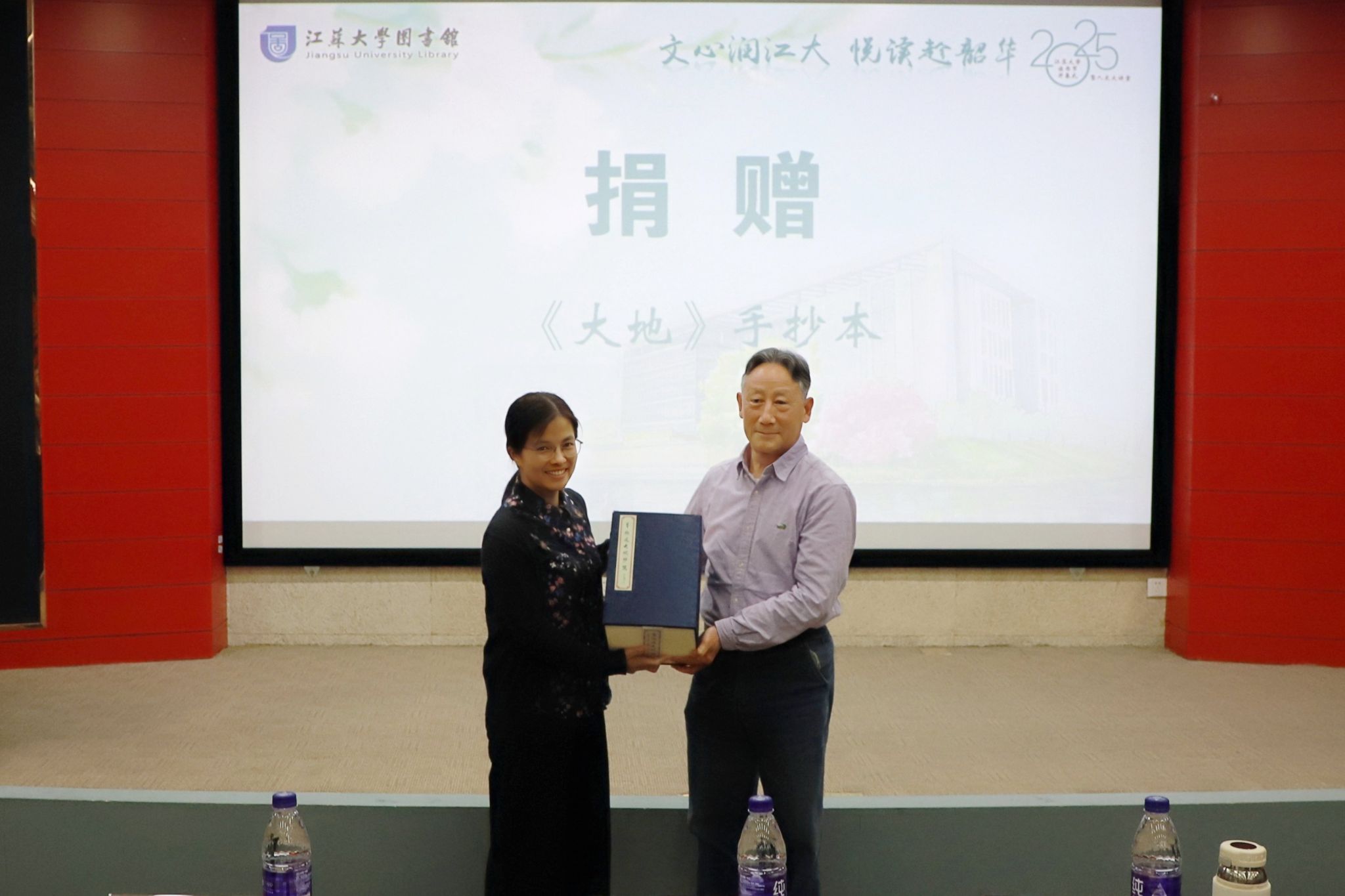 開幕式上,賽珍珠紀(jì)念館向我校贈送鎮(zhèn)江市社科聯(lián)副主席謝林祥歷時22個月完成的賽珍珠代表作《大地》全文手稿;舉行了“賽珍珠經(jīng)典著作《大地》書評大賽”和“‘《大地》詩韻’詩詞創(chuàng)作大賽”頒獎儀式;拾光閱讀分享會的優(yōu)秀指導(dǎo)教師代表、學(xué)生分享人代表圍繞各自閱讀經(jīng)歷、閱讀核心動力、閱讀對大學(xué)生成長的意義等話題作主題發(fā)言。