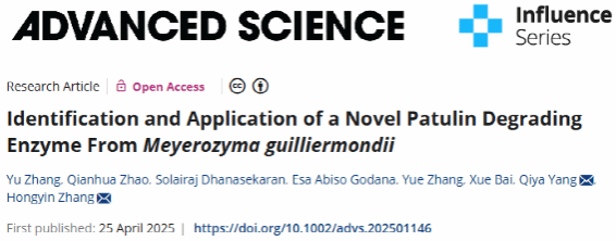 近日,食品與生物工程學(xué)院張紅印教授團(tuán)隊(duì)在頂級(jí)期刊《尖端科學(xué)》(Advanced Science)在線(xiàn)發(fā)表論文Identification and application of a novel patulin degrading enzyme from Meyerozyma guilliermondii。博士生張鈺為第一作者,張紅印教授、楊其亞副教授為共同通訊作者,課題組趙倩華、Solairaj、Esa、張樂(lè)和白雪參與該項(xiàng)工作。