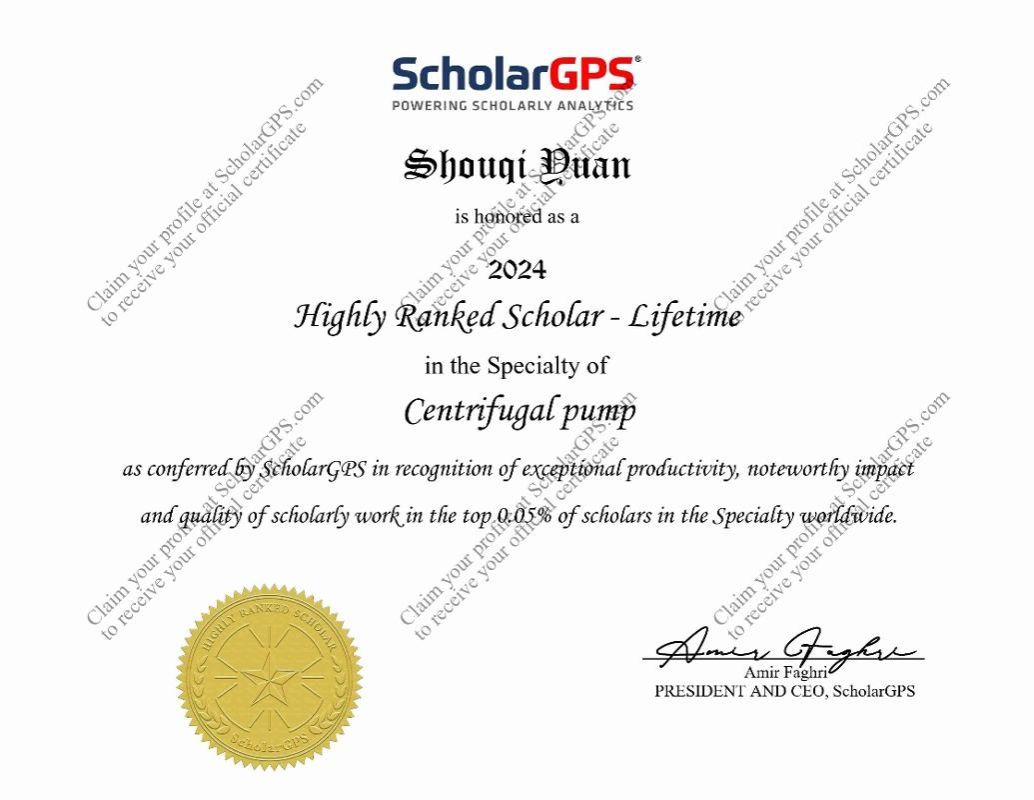 此次入選ScholarGPS終身高級學者榜單,不僅是對個人學術成就的肯定,更標志著學校水泵研究在全球影響力的持續提升。(流體中心)