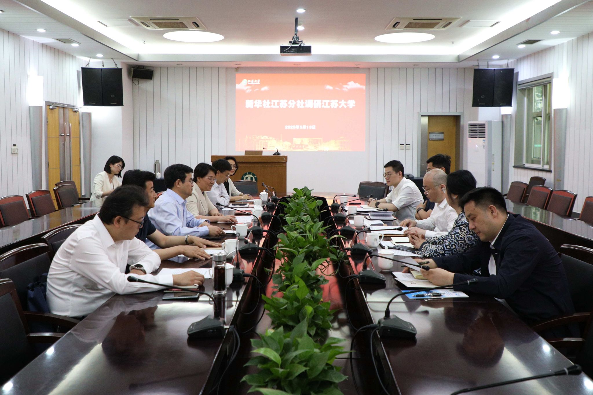 5月13日,新華社江蘇分社分黨組書記、社長劉亢一行調研江蘇大學,校黨委書記李洪波、校長邢衛紅接待了來訪一行,雙方共同謀劃媒體與高校合作共贏、創新發展的新藍圖。調研活動由邢衛紅主持。