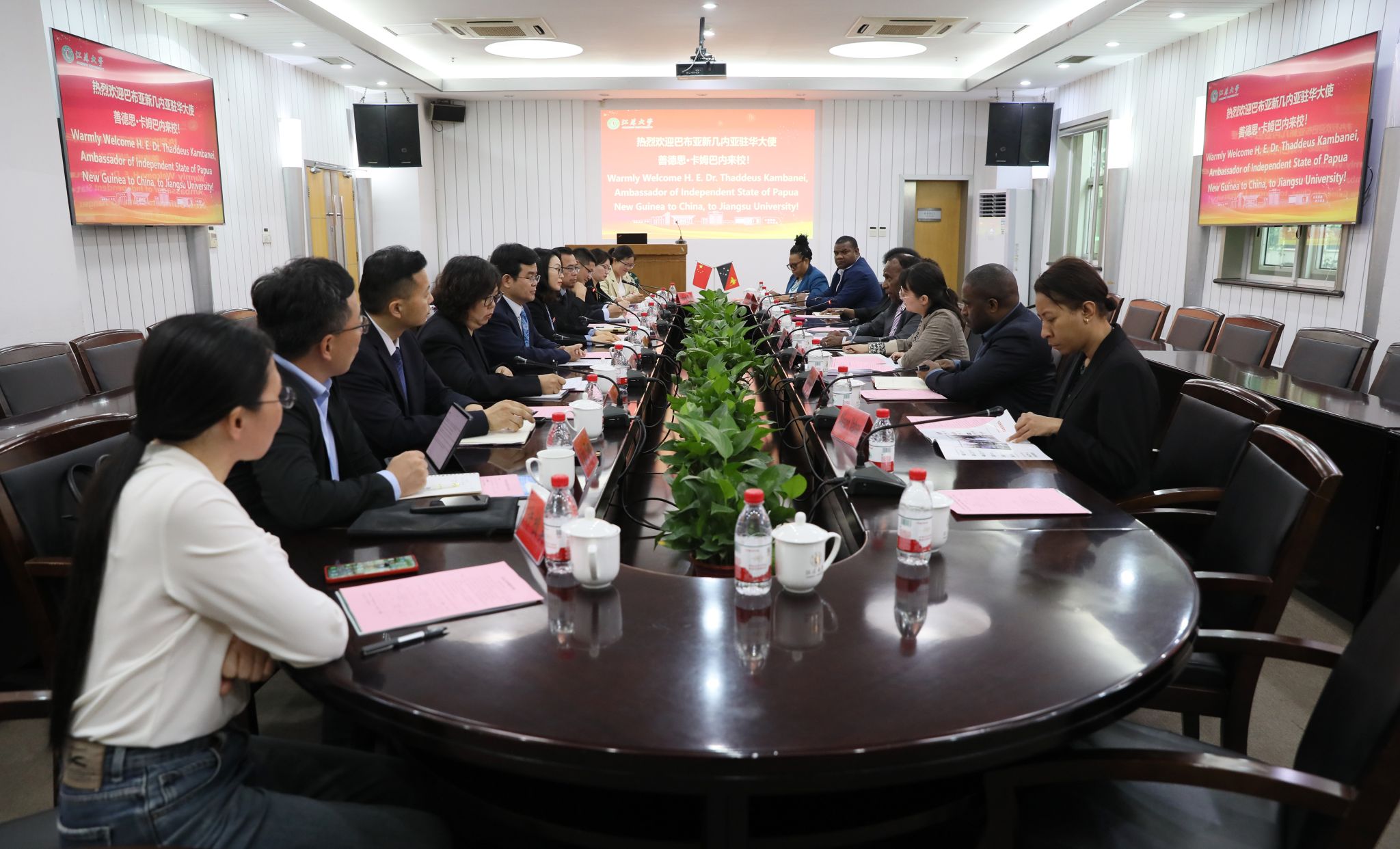 卡姆巴內(nèi)表示,巴新與中國在各領(lǐng)域尤其是人文和教育領(lǐng)域的交流十分密切,感謝江蘇大學(xué)為巴新培養(yǎng)了眾多優(yōu)秀人才,巴新駐華大使館愿意推動(dòng)巴新高校加強(qiáng)與江蘇大學(xué)的合作,通過互派學(xué)者、增加學(xué)生交流項(xiàng)目等途徑深化合作,促進(jìn)互利共贏。