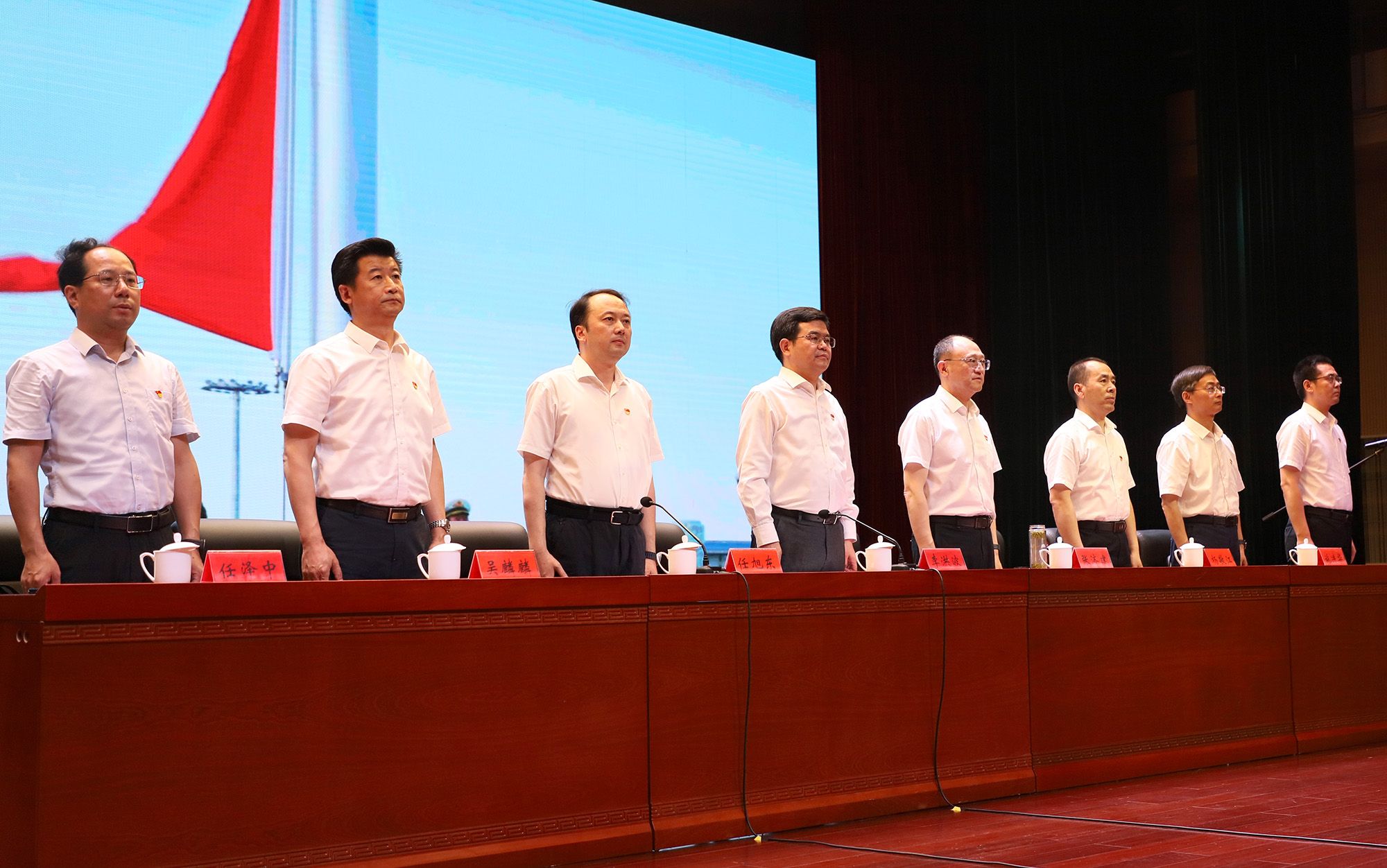 張濟建帶領全體黨員重溫入黨誓詞。黨員同志面向黨旗莊嚴宣誓,在錚錚誓言中重溫入黨初心,堅定理想信念,牢記職責使命。
