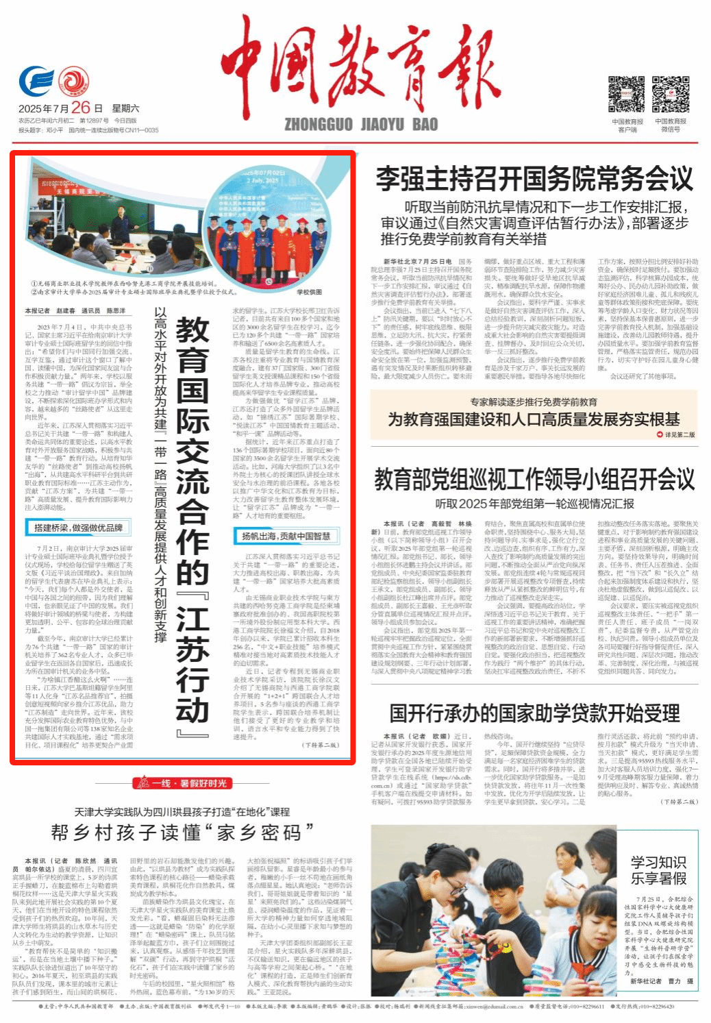 7月26日,《光明日報》與《中國教育報》頭版分別報道學校育人成效,展現了學校人才培養深度融入國家戰略與產業發展的生動實踐。