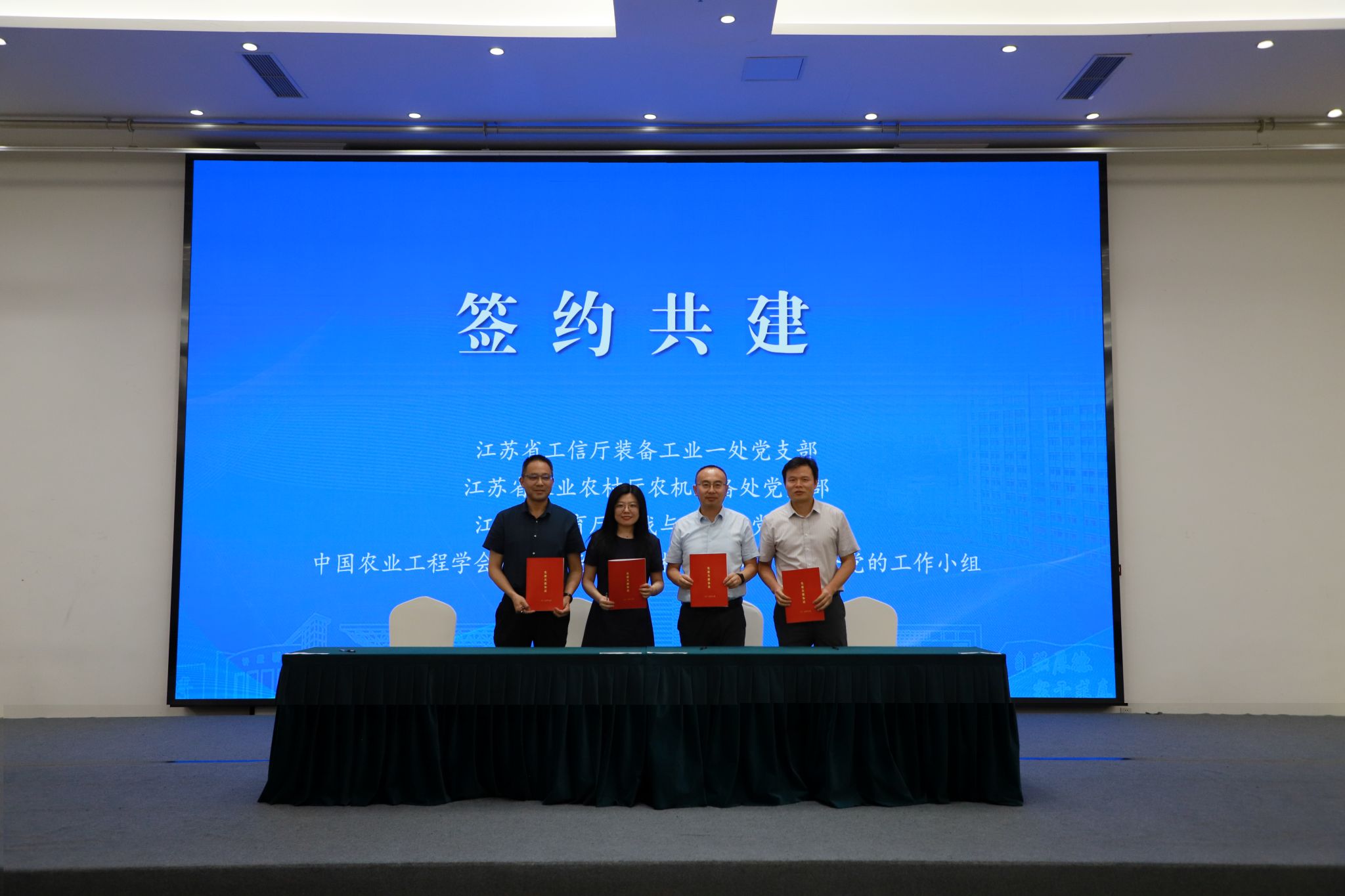 活動現場,江蘇省工信廳裝備工業一處黨支部、江蘇省農業農村廳農機裝備處黨支部、江蘇省教育廳統戰與群工處黨支部、中國農業工程學會人工智能和農業機器人專業委員會黨的工作小組簽署黨建共建協議,將通過“組織聯建、資源聯享、人才聯育、難題聯解”等方式,深化黨建共建,凝聚發展合力,助力產業發展。