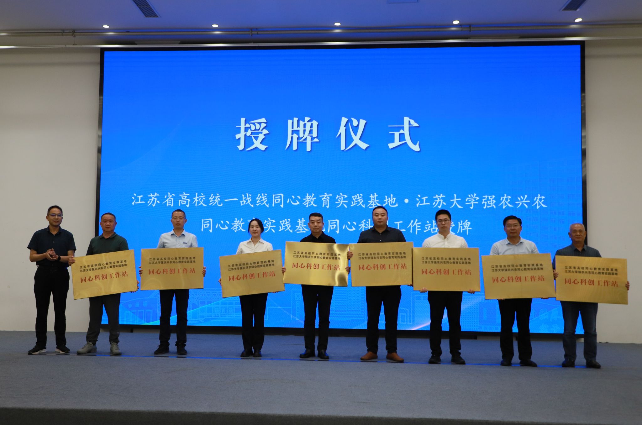 活動中,顧春鋒為8家企業授牌“江蘇省高校統一戰線同心教育實踐基地·江蘇大學強農興農同心教育實踐基地同心科創工作站”,李紅為同心科創工作站專家代表頒發聘書。校黨委統戰部常務副部長金玉成介紹了“同心共創·向新而行”統一戰線賦能農機裝備產業鏈試點行動方案。