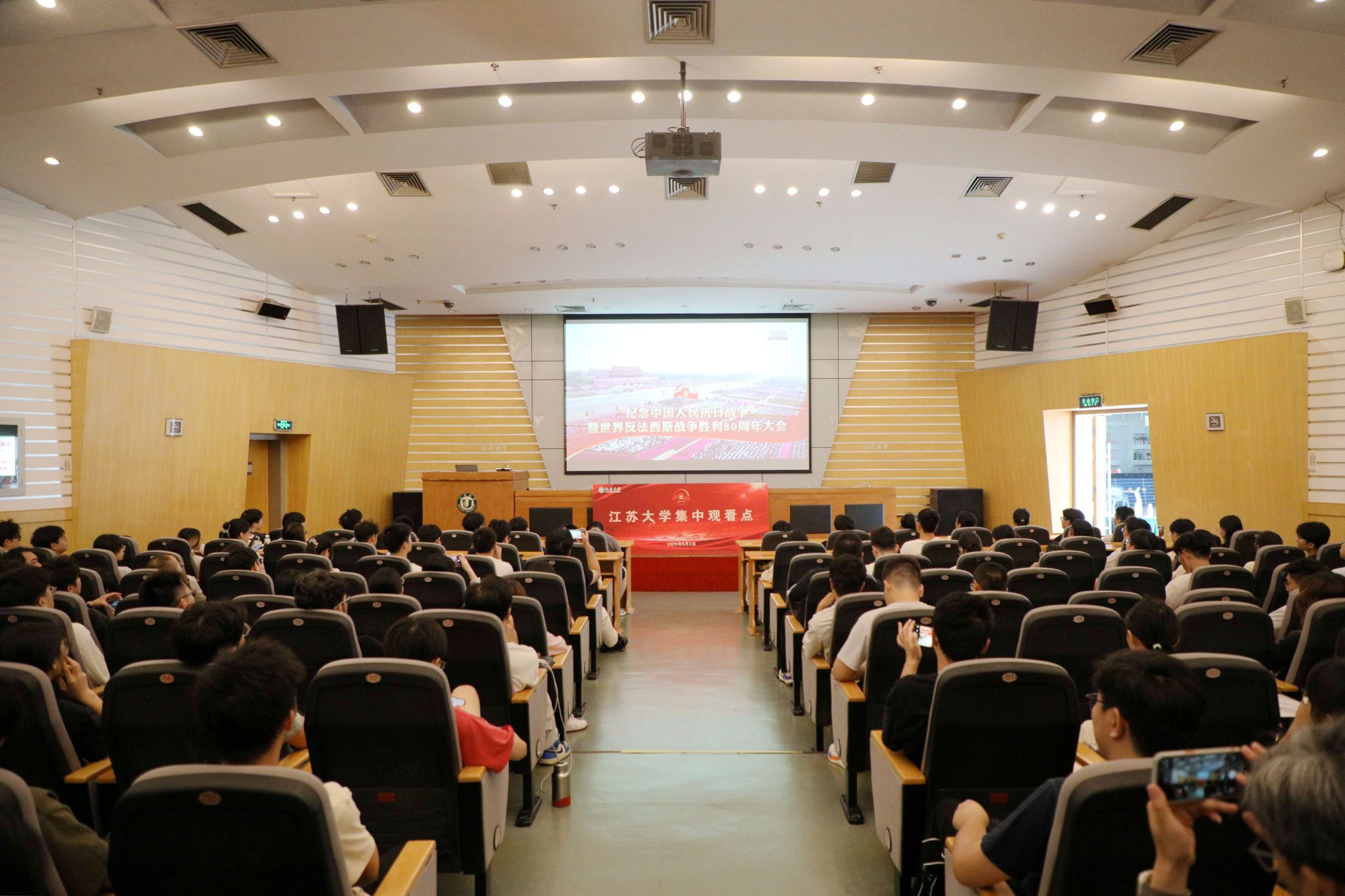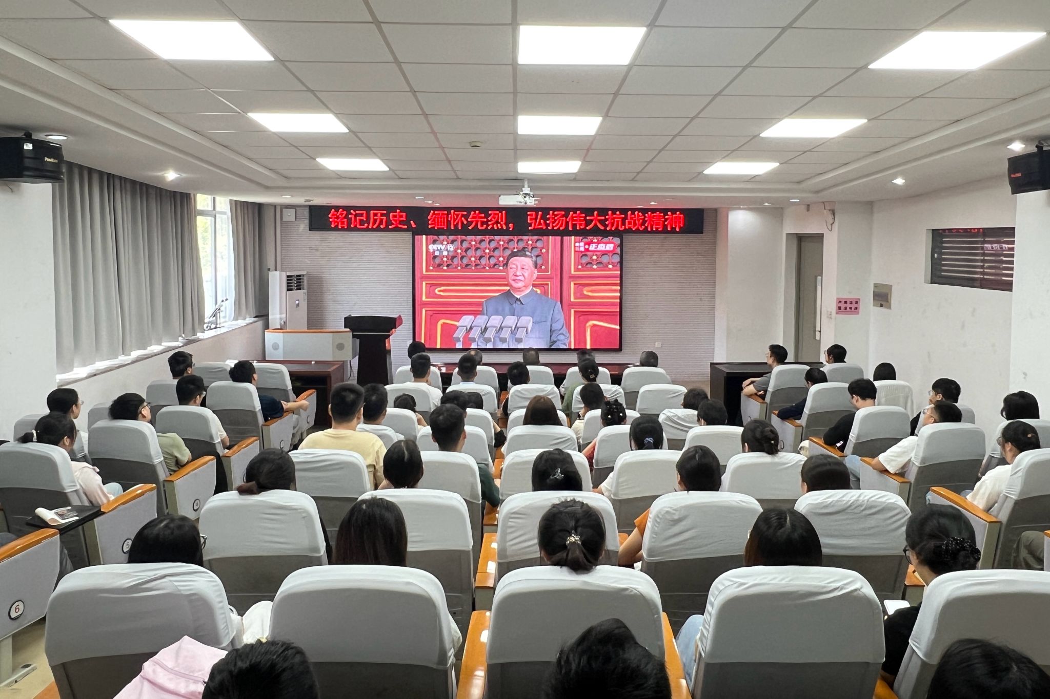 9月3日上午,紀念中國人民抗日戰爭暨世界反法西斯戰爭勝利80周年大會在北京隆重舉行。學校在會議中心第一報告廳設立主會場,200余名學生代表集中收看大會盛況。與此同時,校領導帶頭,各部門、各學院通過線上平臺、教室集中收看等方式,組織師生同步觀看直播,共同銘記歷史、緬懷先烈、珍愛和平、開創未來,傳承和弘揚偉大抗戰精神。