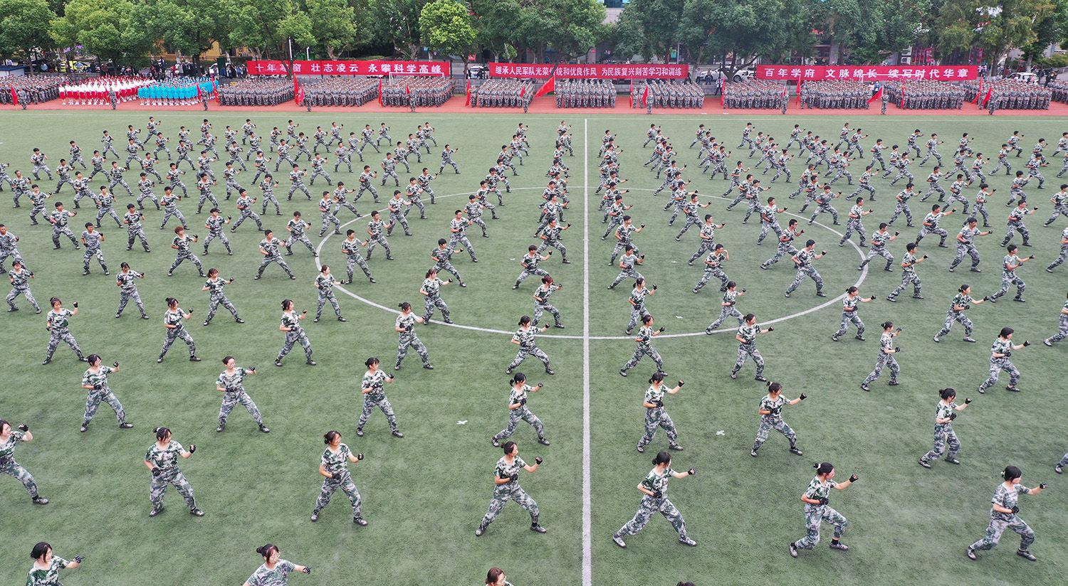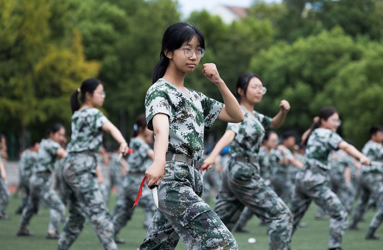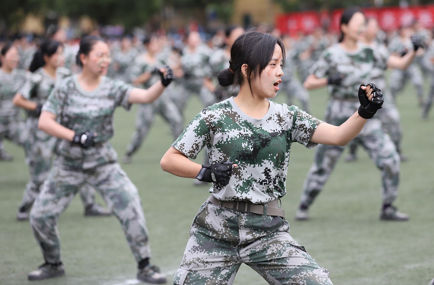 分列式環(huán)節(jié),3個特色方隊和12個軍訓(xùn)營方隊一一從主席臺前經(jīng)過;軍體拳、格斗術(shù)、匕首操等軍訓(xùn)特色課目依次匯報展示。