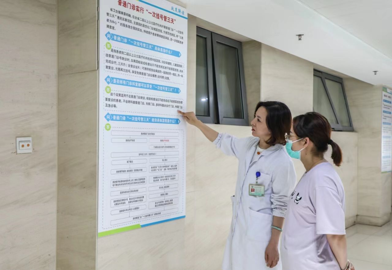 2008年7月,該院全面啟動“普通門診掛號三日有效”的惠民舉措:普通門診患者在三天內復診,可直接到診區由分診護士安排候診復診。患者出示初診掛號單,分診護士確認為72小時內即安排就診,不僅減少了掛號費用,更有效解決了患者就醫多次往返的問題。