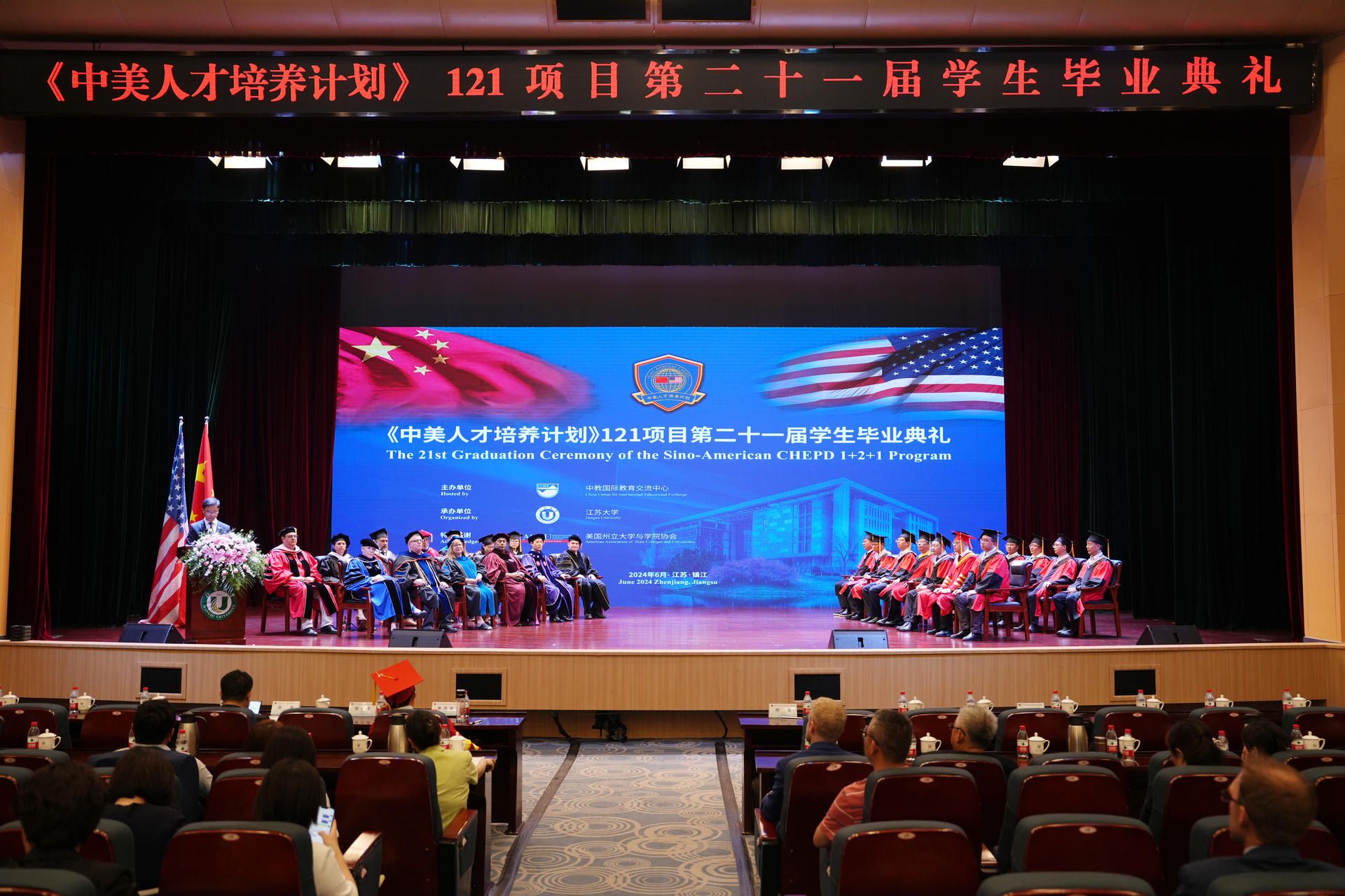 6月18日至19日,2024《中美人才培養計劃》121項目年會暨第二十一屆學生畢業典禮在江蘇大學舉行。來自中美50所高校130余名校長和老師、120余名畢業生以及畢業生家長齊聚歷史文化名城鎮江,共同見證中美大學交流合作新發展。